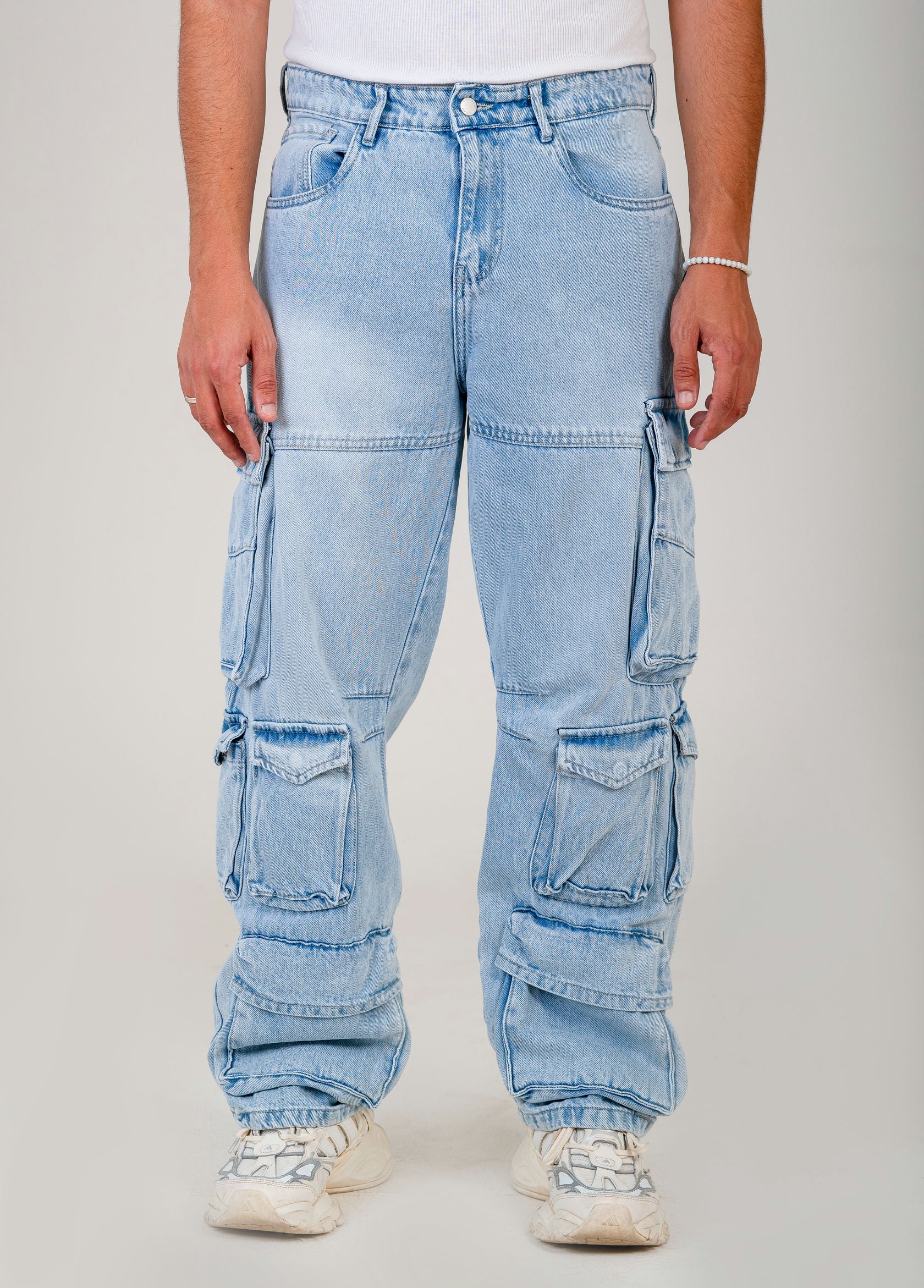 Make a bold statement with these Men's Multi-Pocket Cargo Denim Jeans. Featuring a relaxed fit and rugged construction, these jeans combine the durability of denim with the utility of cargo styling. With multiple flap pockets and paneled stitching, they're built for both function and fashion. Perfect for streetwear looks or standout everyday outfits.